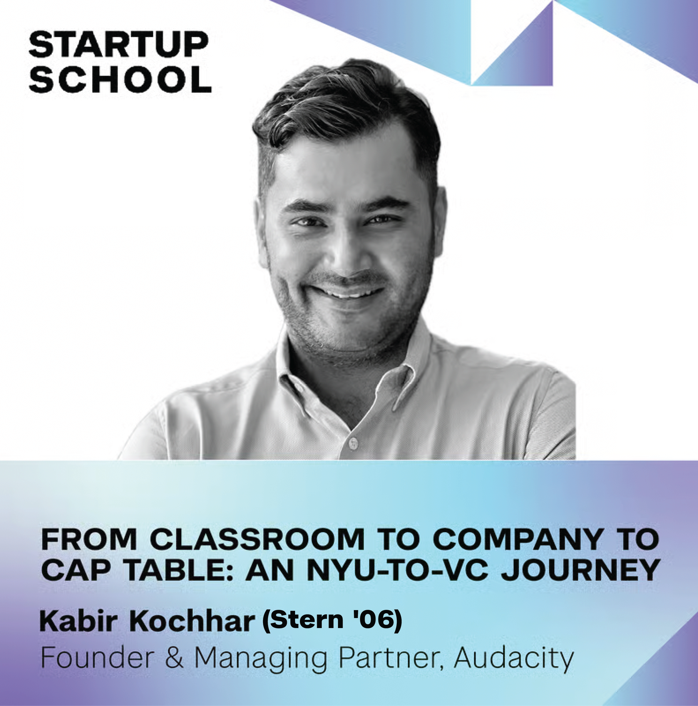 Join Kabir Kochhar (Stern '06), Founder and Managing Partner of Audacity, for an inside look at how to navigate the journey from university to entrepreneurship to venture capital.
